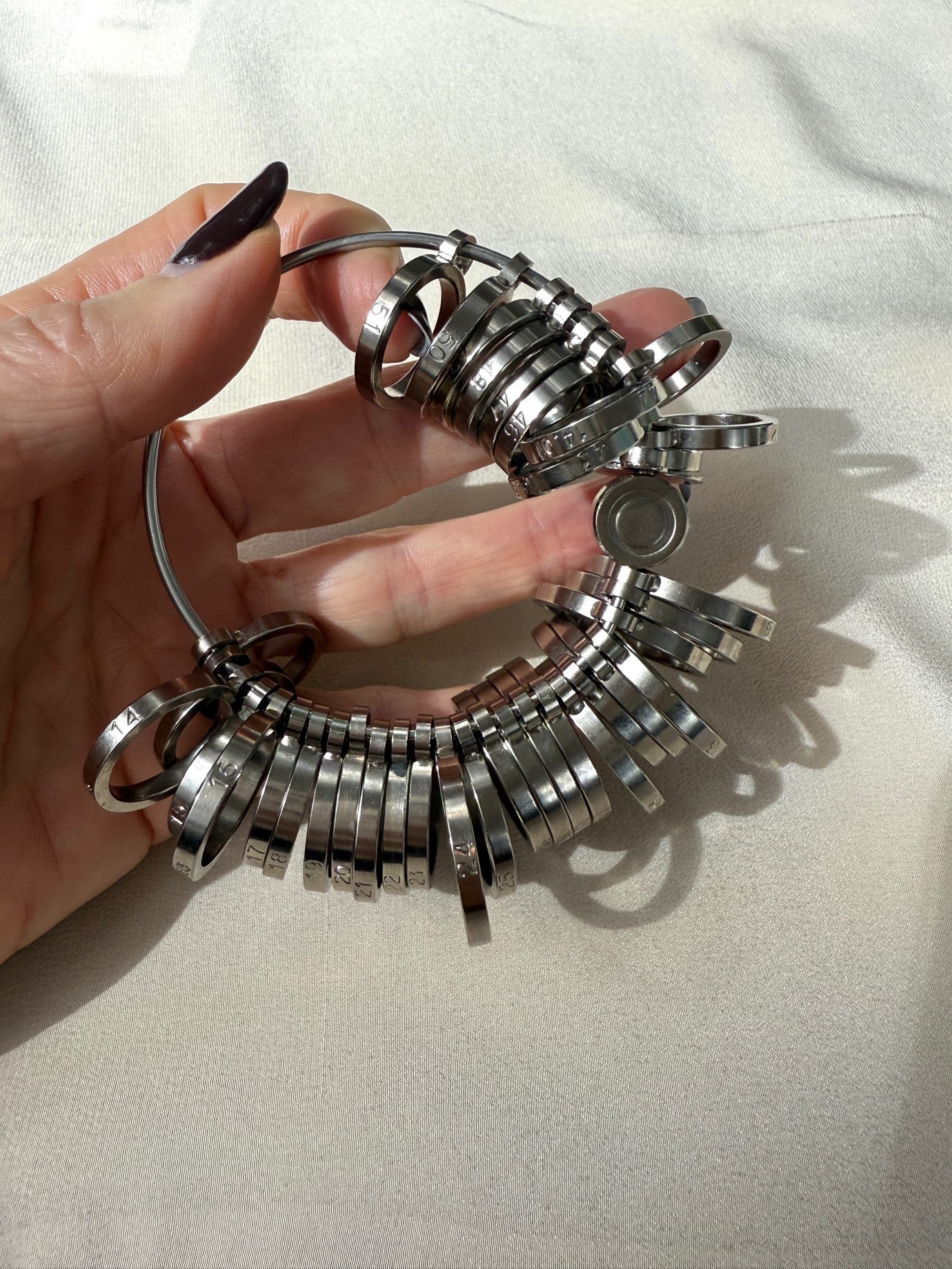 You can always borrow a ring sizer from me and we can measure your ring size together, but if you’re buying a ring as a gift and you want it to be a surprise, here are different ways to measure the ring size.