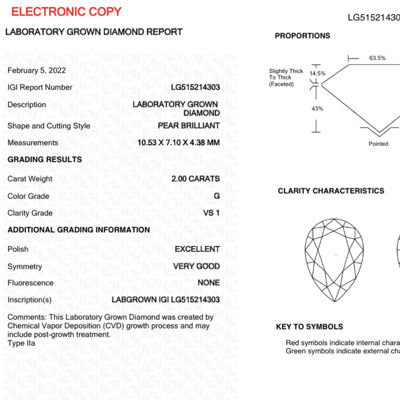 I did a little experiment that no one believed. Could I buy a laboratory-produced diamond of 2 carat drop shape in Color G, and clarity VS1 with a good ratio for under 1000 USD, i.e. under 7000 DKK, and have it sent to Denmark?